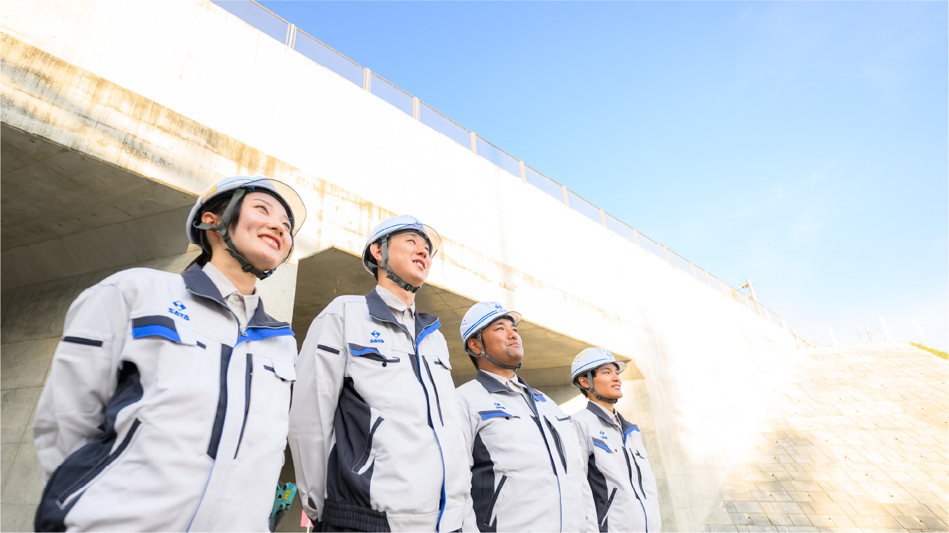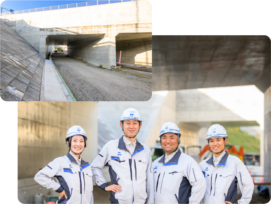 佐田建設の土木工事部門では、トンネル、道路、橋梁、下水道などの社会インフラから、地盤改良や住宅地造成まで幅広い工事を手がけてきた。群馬を中心とする首都圏や関西、東北地方を主要エリアとし、国土交通省や地方公共団体、都市再生機構、NEXCOなどの公共工事が全体の9割を占めている。地域の基盤を創造する社員たちの姿を紹介する。